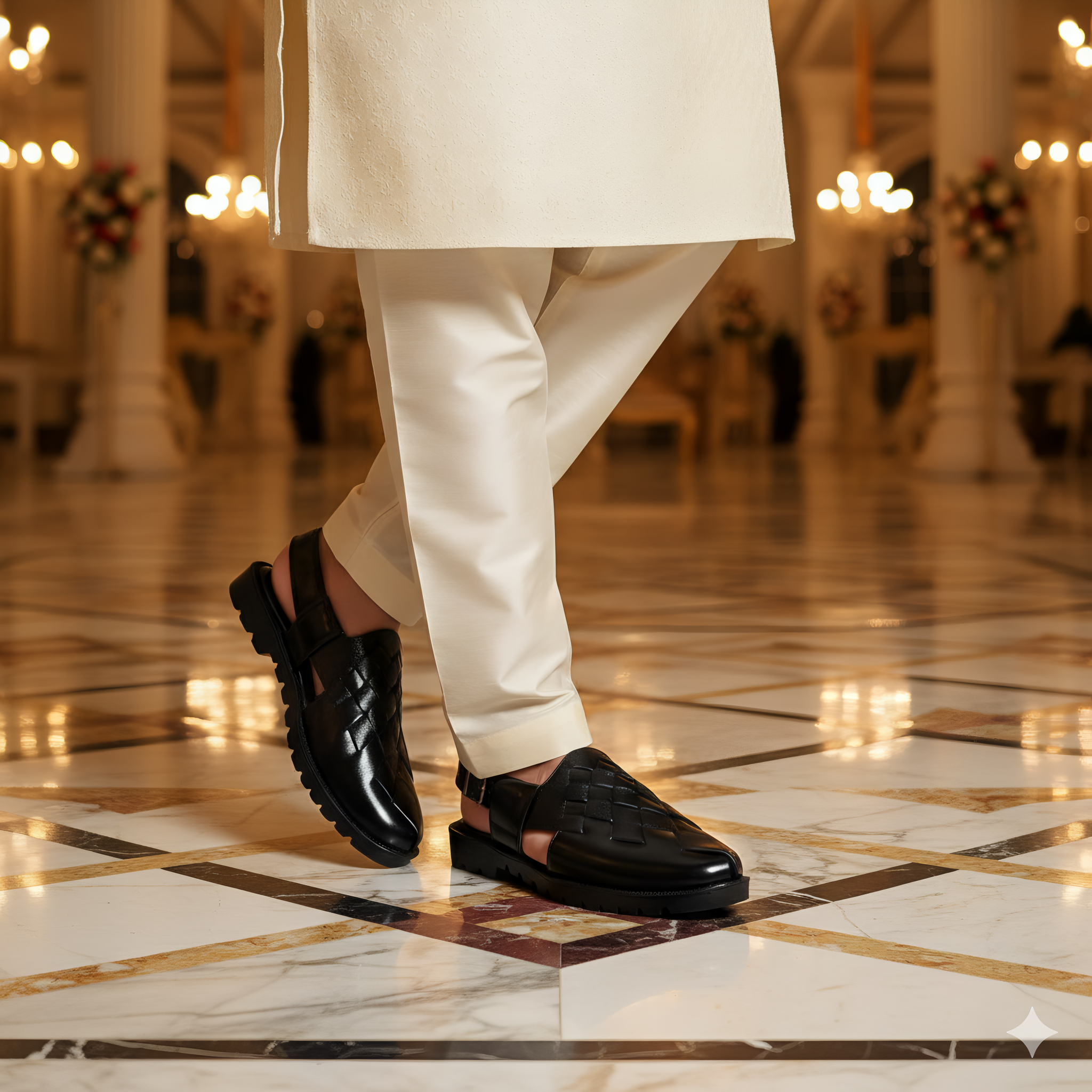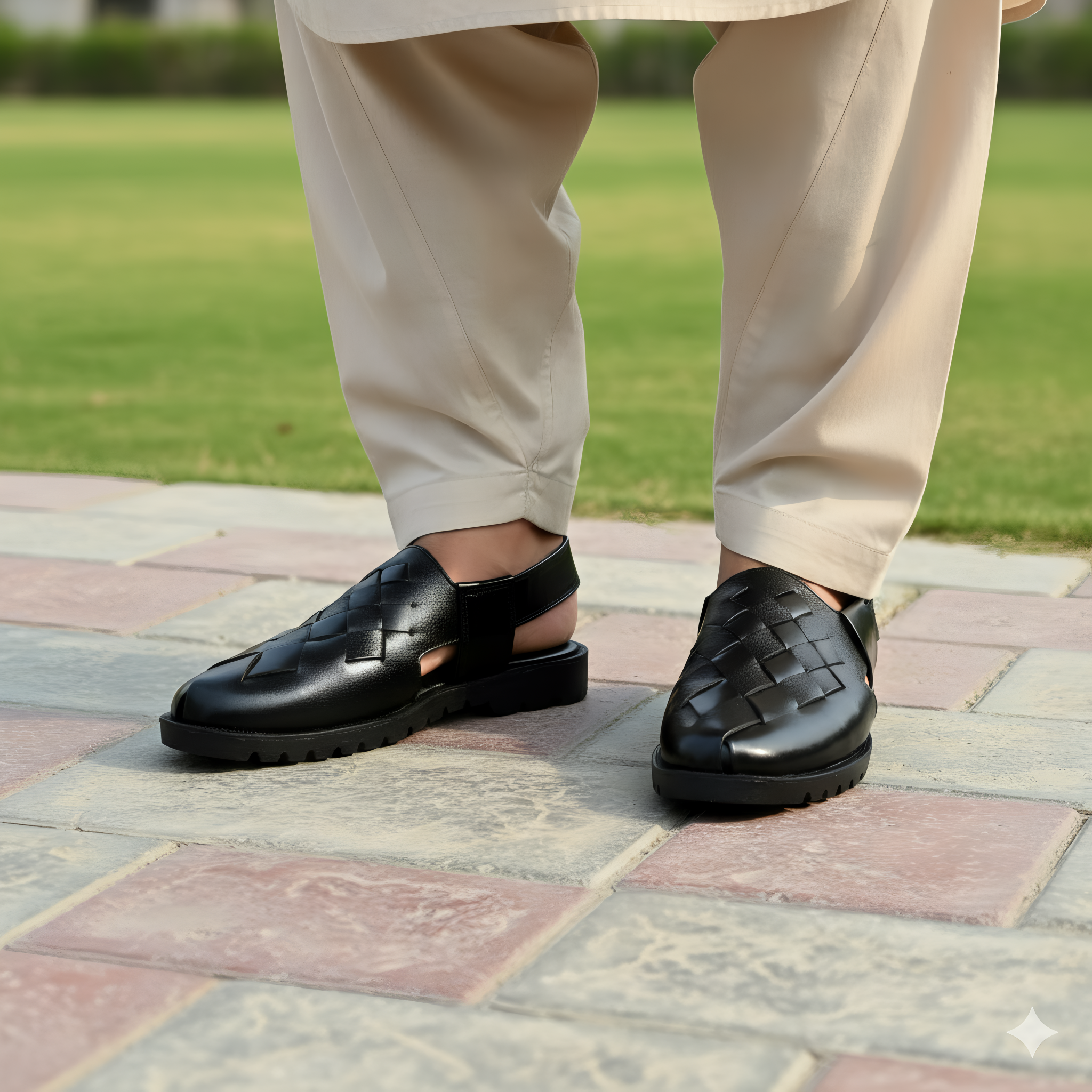 This footwear is designed for daily wear with a balance of style and comfort. The black finish matches easily with shalwar kameez or casual trousers, making it useful for regular outings and social visits. Its tough sole works well on different surfaces, while the breathable cuts keep the feet at ease in warm weather. A simple choice for men in Pakistan who want both practicality and tradition in one pair.
